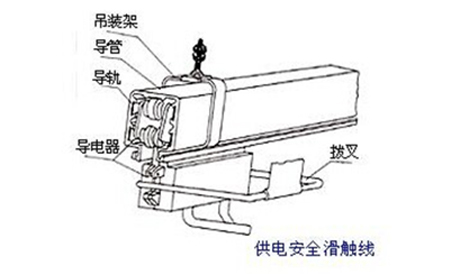 滑觸線能夠在電動(dòng)葫蘆行業(yè)應(yīng)用的比較廣泛,是因?yàn)樗谶\(yùn)行的時(shí)候人體及異物接觸不到導(dǎo)軌,杜絕觸電事故,保證使用安全,特別在各種起重機(jī)械得到廣泛的運(yùn)用。因?yàn)閳龊系牟煌妱?dòng)葫蘆電源線一般要求靈活性高,可以經(jīng)得起彎、折、扭等動(dòng)作;而安全滑觸線主要是要求場合固定,路線穩(wěn)定,不能亂移動(dòng)。來說一下電動(dòng)葫蘆的滑觸線由兩個(gè)部件組成的,導(dǎo)管,導(dǎo)電器兩種以及一些其他的部件構(gòu)成。如下圖所示: